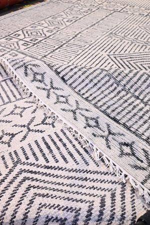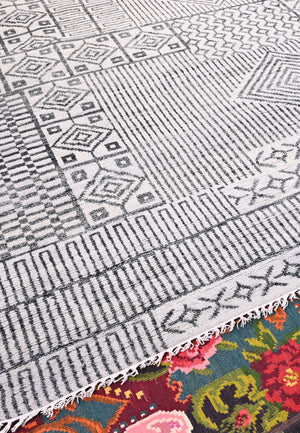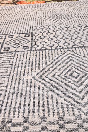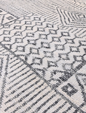 Berber rugs of Africa have always attracted designers for the simple and spontaneous designs that make them most enjoyable to use in modern interiors. This carpet is inspired by such rugs and represents a neat and simple design. The loose weave and quality wool have added a pleasing texture to the piece that makes it easy on the eyes and fascinating to decorate with. It can turn your room into an inviting, cosy space when you spread the rug in. The grey and beige tones of this carpet can be a neutral background to almost any colour in the room.