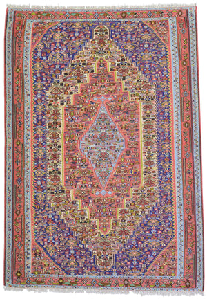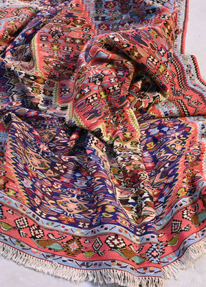 Kurd weavers produce extremely fine flatweaves. These weavings are commonly known as "Seneh" kilims. They are impressive due to the mastery of the weavers and the materials that the weavers use.