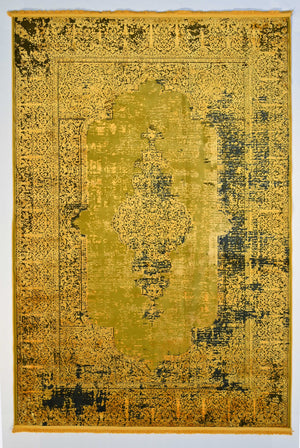 For this carpet, Tencel and Acrylic are skillfully mixed to create a wonderful texture. The contrast between the shimmering yellow in Tencel and matte surface of the acrylic enhances the classic design's elegance. Additionally, This is a piece that has gone through a very sophisticated process of overdyeing to achieve an extraordinary hue. The piece could work in both modern and classic spaces.